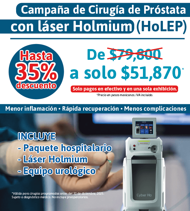 El láser HoLEP, abreviatura de Holmium Laser Enucleation of the Prostate, es un tratamiento quirúrgico mínimamente invasivo utilizado para tratar la hiperplasia benigna de próstata (HBP), una condición caracterizada por el agrandamiento de la próstata que puede causar dificultades urinarias en los hombres. Esta técnica utiliza un láser de holmio para remover quirúrgicamente el tejido prostático que bloquea el flujo urinario, una alternativa eficaz a los métodos tradicionales como la resección transuretral de la próstata (TURP) y la prostatectomía abierta.